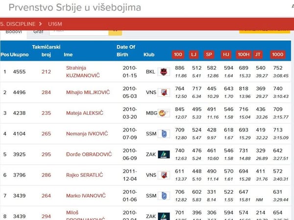 Na Prvenstvu Srbije u višebojima u konkurenciji pionira nastupilo je četvoro mladih atletičara Atletskiog kluba „Srem“ iz Sremske Mitrovice.