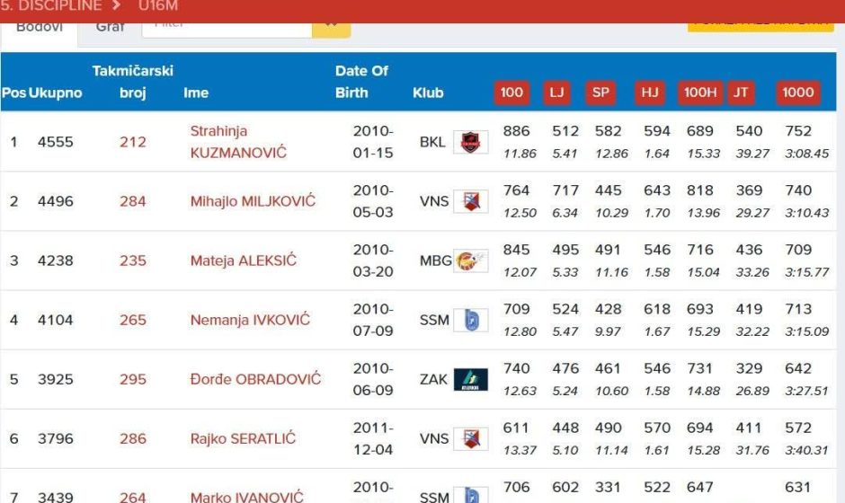 Na Prvenstvu Srbije u višebojima u konkurenciji pionira nastupilo je četvoro mladih atletičara Atletskiog kluba „Srem“ iz Sremske Mitrovice.