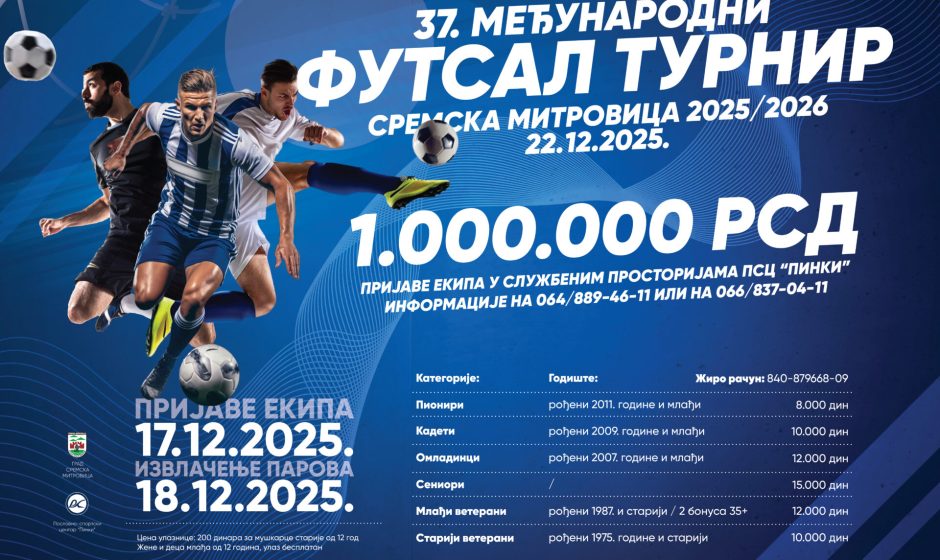 Sremska Mitrovica će i ove zime biti centar regionalnog futsala — 37. Međunarodni futsal turnir 2025/26 počinje 22. decembra, dok su prijave ekipa otvorene do 17. decembra 2025. Izvlačenje grupa zakazano je za 18. decembar.